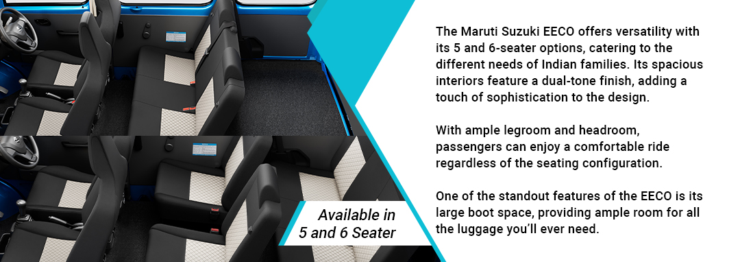 | VARIANT | EECO 5 SEATER STANDARD | EECO 5 SEATER AC | EECO 5 SEATER AC CNG | EECO 6 SEATER STANDARD |